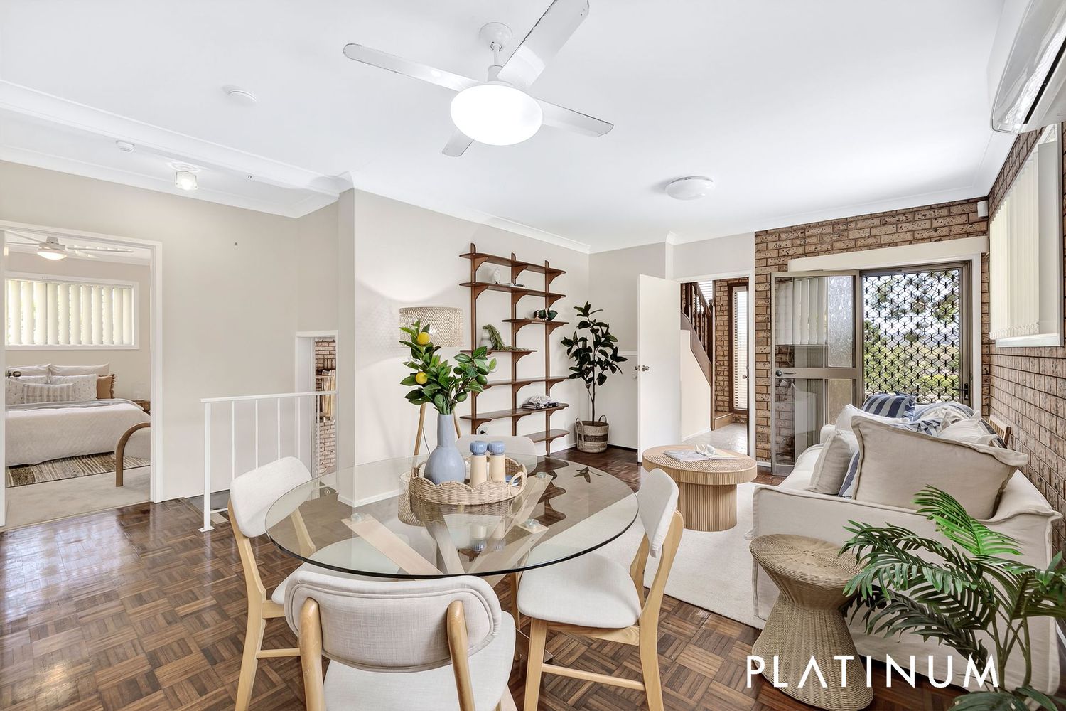 The main floor features three bedrooms and two bathrooms, each with built-in wardrobes. The light-filled kitchen flows effortlessly into the open-plan living and dining areas, where large glass doors open onto two separate balconies capturing a lovely elevated outlook. Designed for both style and practicality, the kitchen includes stone benchtops, a dishwasher, and ample storage. Modern floorboards enhance the living spaces, while the bedrooms have been freshly carpeted for comfort. A spacious main bathroom with a corner spa offers the perfect place to unwind, while ducted air-conditioning, solar panels, and a security system ensure everyday comfort and peace of mind.