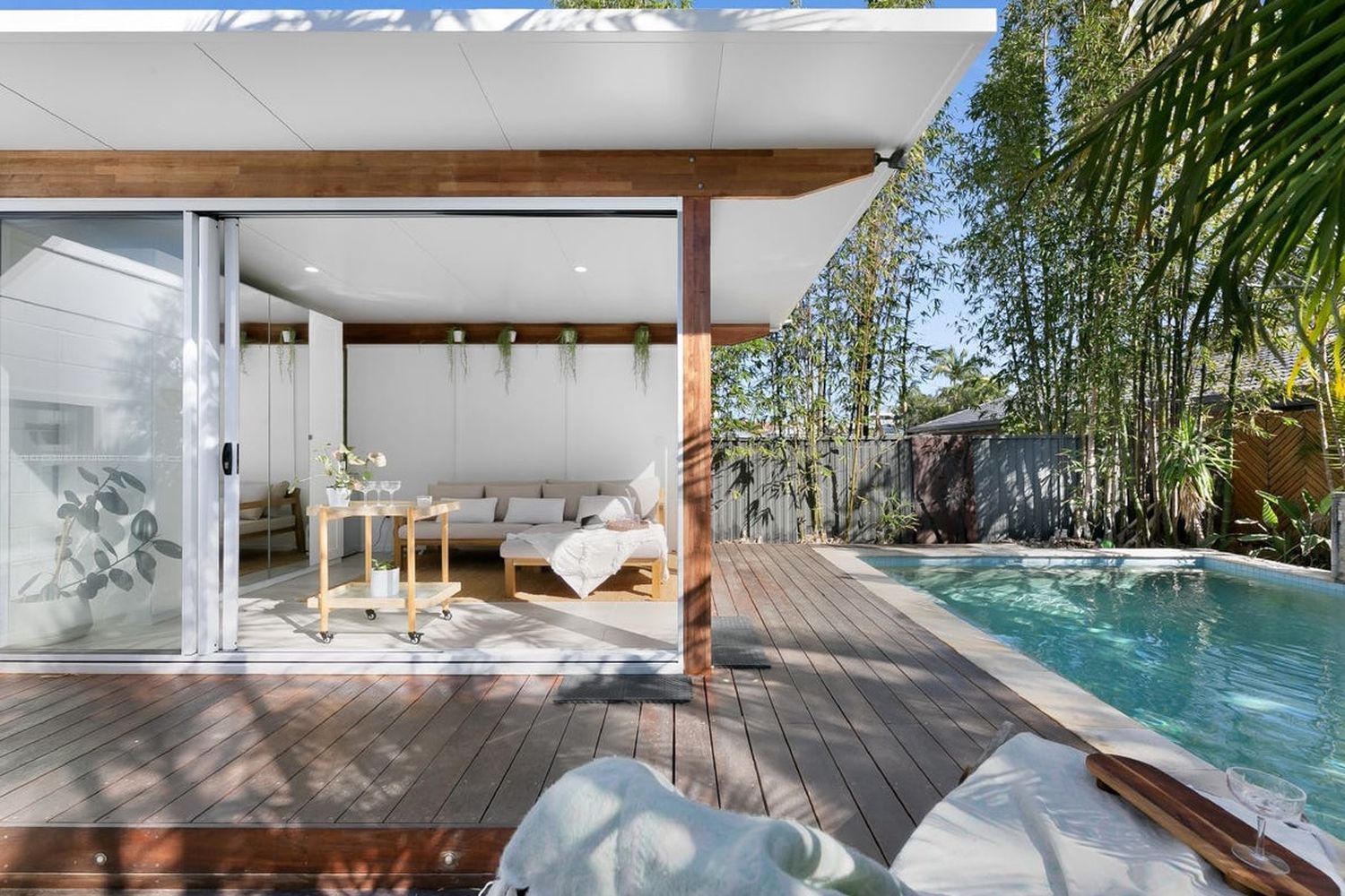 A self-contained guest area includes a Scandi-style kitchenette, sunken lounge, one bedroom, and bathroom – ideal for multi-generational living.