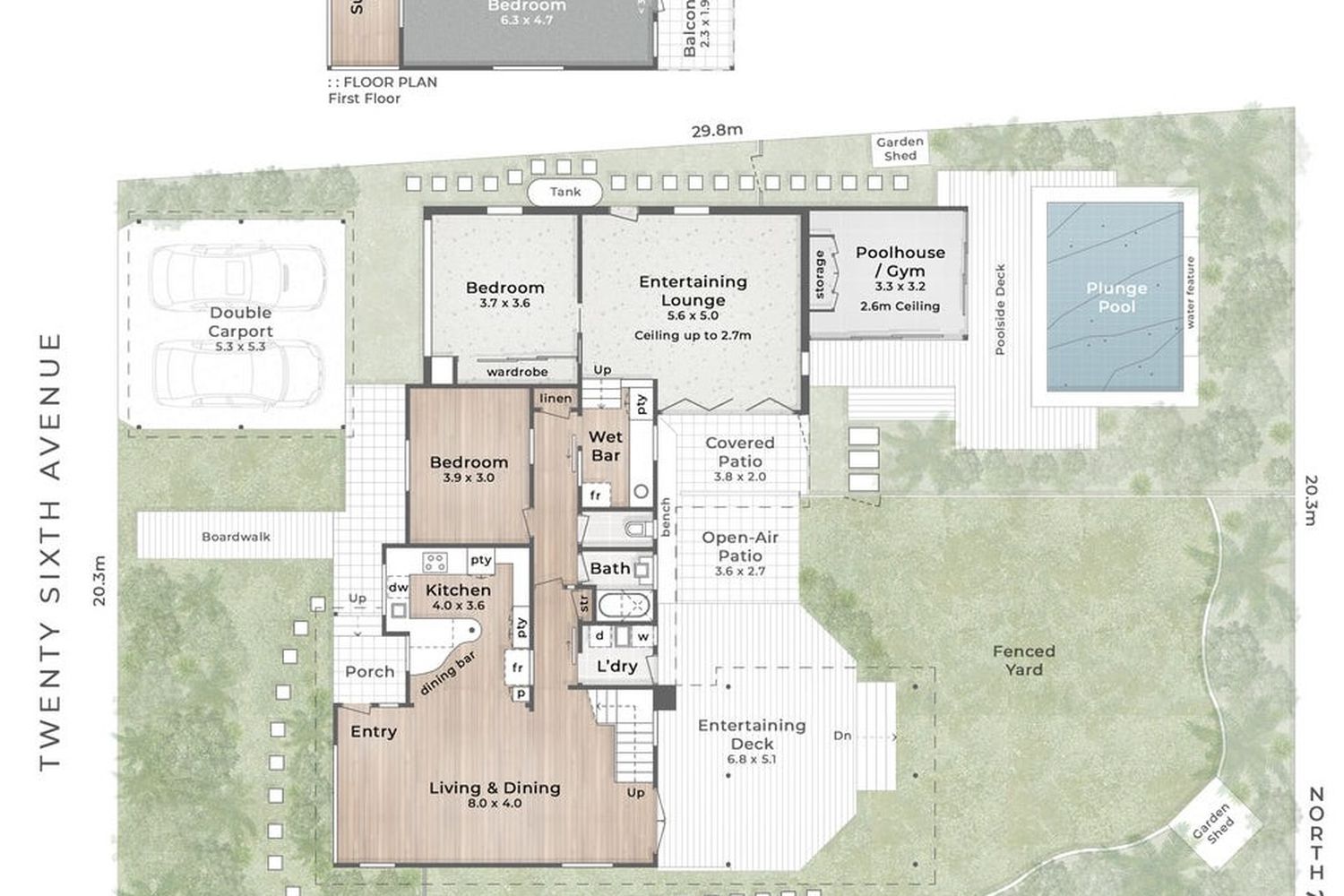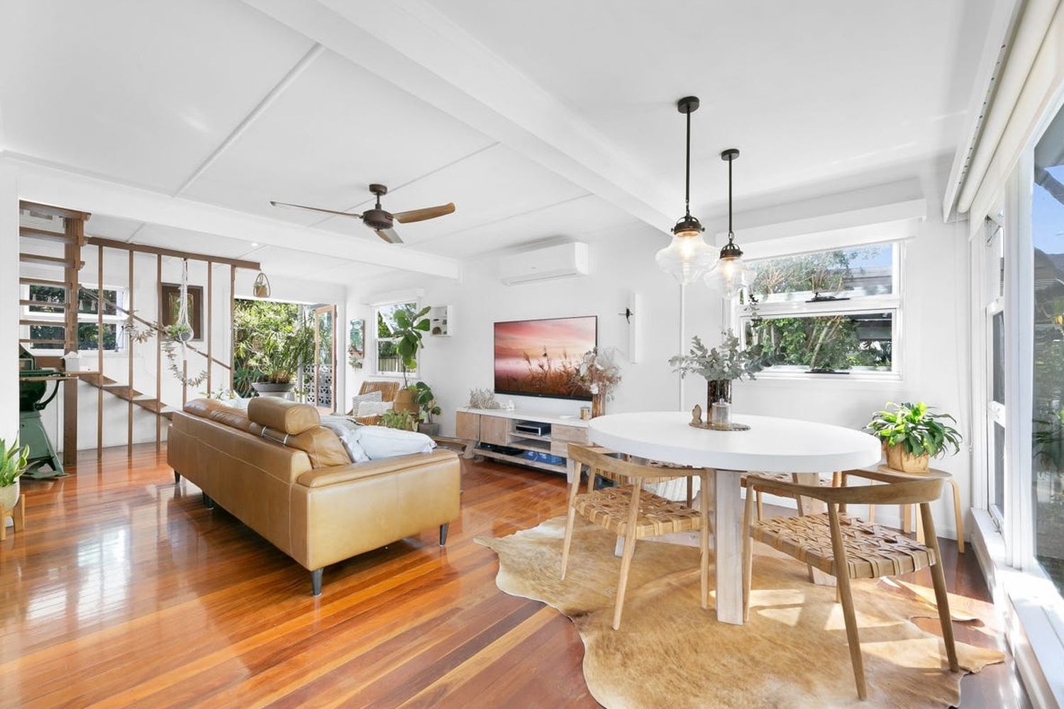 Positioned in a sought-after Palm Beach pocket, just moments from Tallebudgera Creek, this stylish dual-level home on a 617m² block offers space, charm, and flexibility. The main residence features bright, airy interiors, timber floors, a cheerful kitchen, and an open-plan living area that flows to a large entertaining deck. Upstairs, enjoy hinterland and ocean glimpses from the master retreat with ensuite, private balcony, and sunroom/art studio.