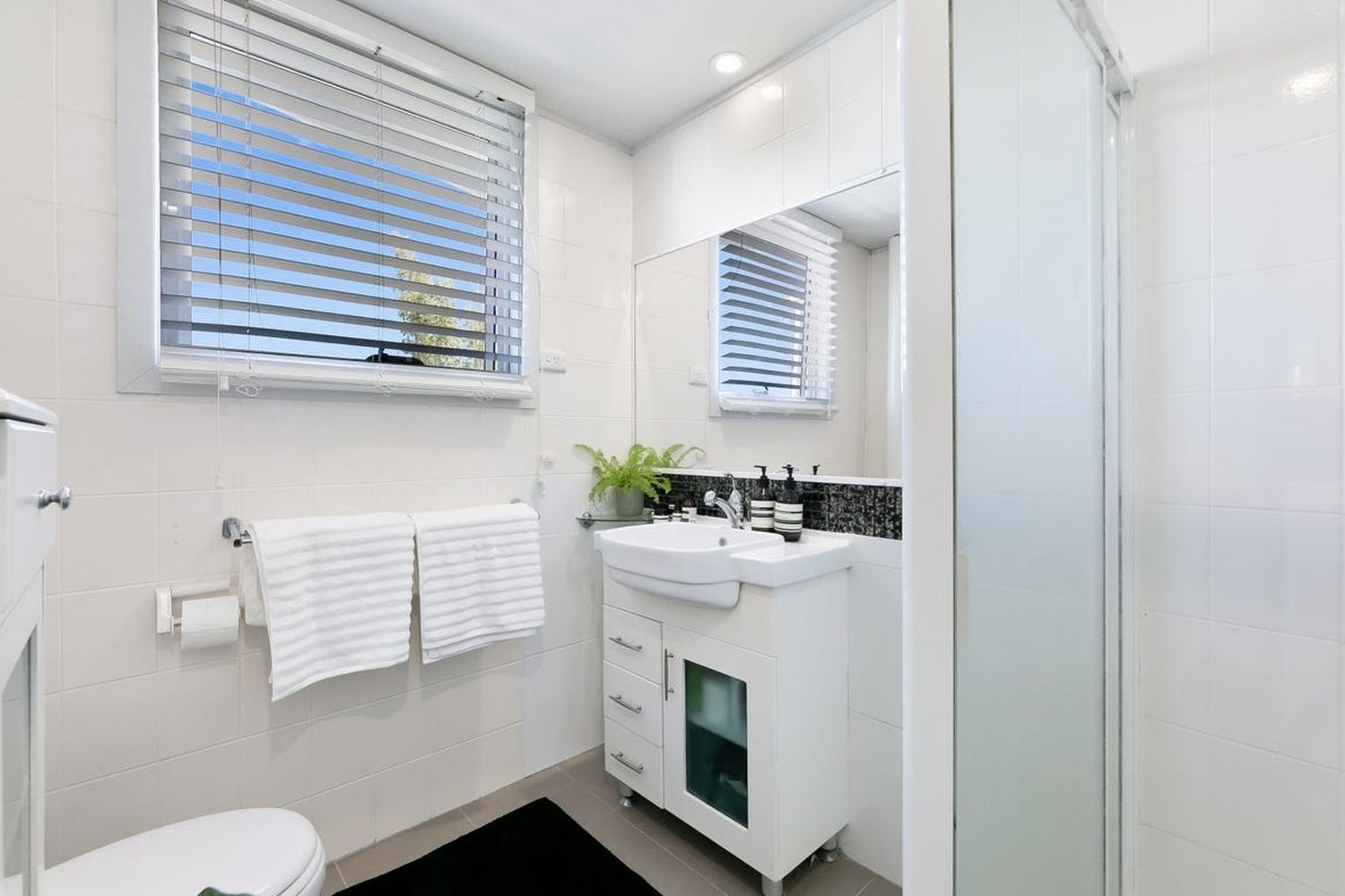 - Main bathroom with combined shower/bath, vanity, and separate toilet.