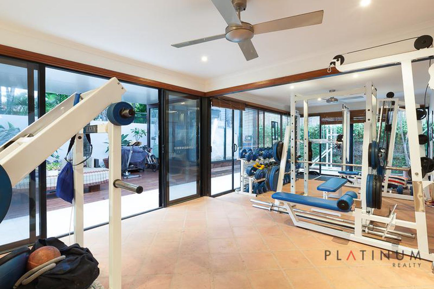 The living room flows out to a large, tiled sunroom across the rear, spanning the full width of the property. Used by the current owner as a gym, this area is an ideal family room or retreat for the kids, or may even be utilised as a fourth bedroom.
