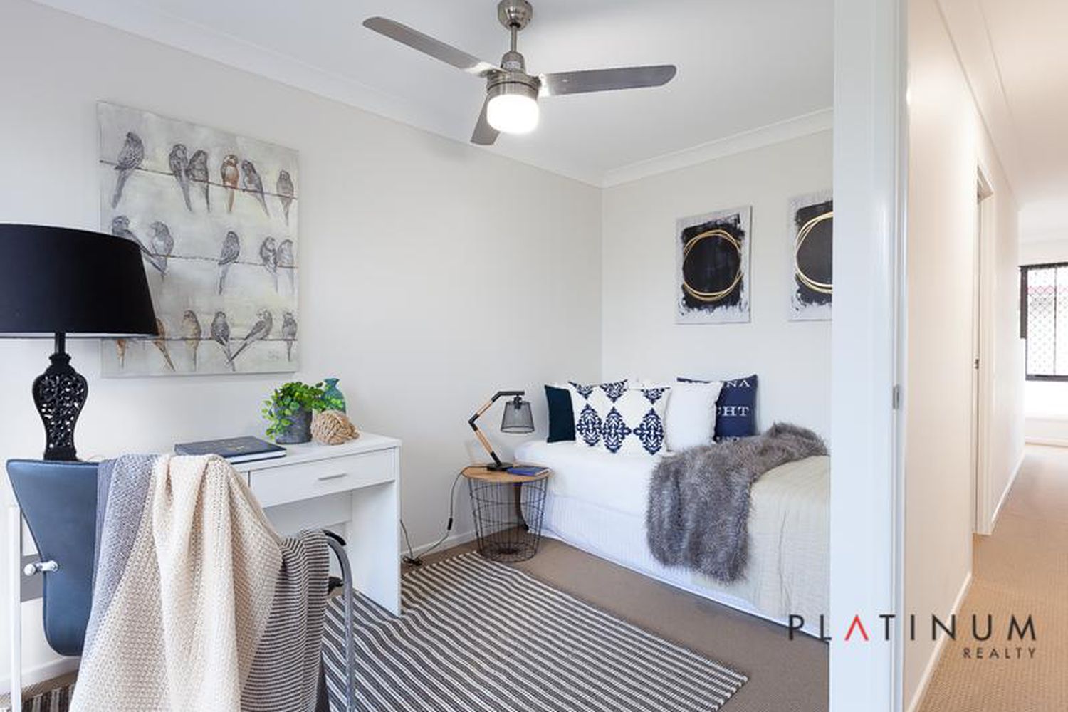 Retreat upstairs to find two good sized bedrooms with built-in mirrored robes plus a third room ideal for use as a study or third bedroom.