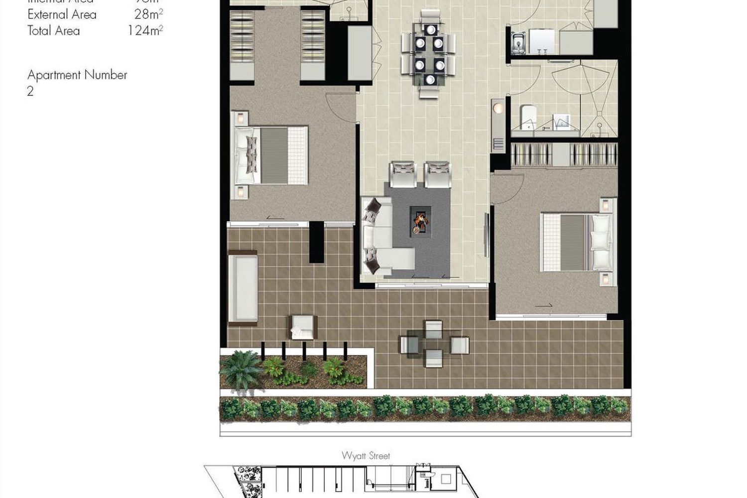 A generous ensuite off the main bedroom features a double shower and double vanity, whilst the bedroom provides a relaxing outlook to the spacious garden terrace.
